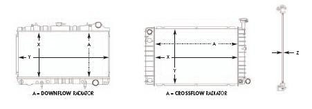 The depth is the measurement in thickness of the radiator core depending on how many rows the radiator was built. An easy way to measure thickness is by inserting a wire through the fins until flush with the core. Mark the other end of the wire and measure the wire