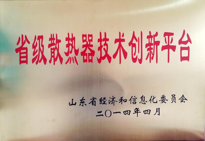 近日,我公司申报的山东省创新能力建设项目通过山东省经信委验收,授予“省级散热器技术创新平台”荣誉称号。